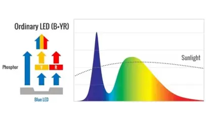 Common full-spectrum LED's utilizes potentially hazardous 'blue' LED technology that emit excessive blue light and a spectral "curve" that's not similar to natural sunlight.